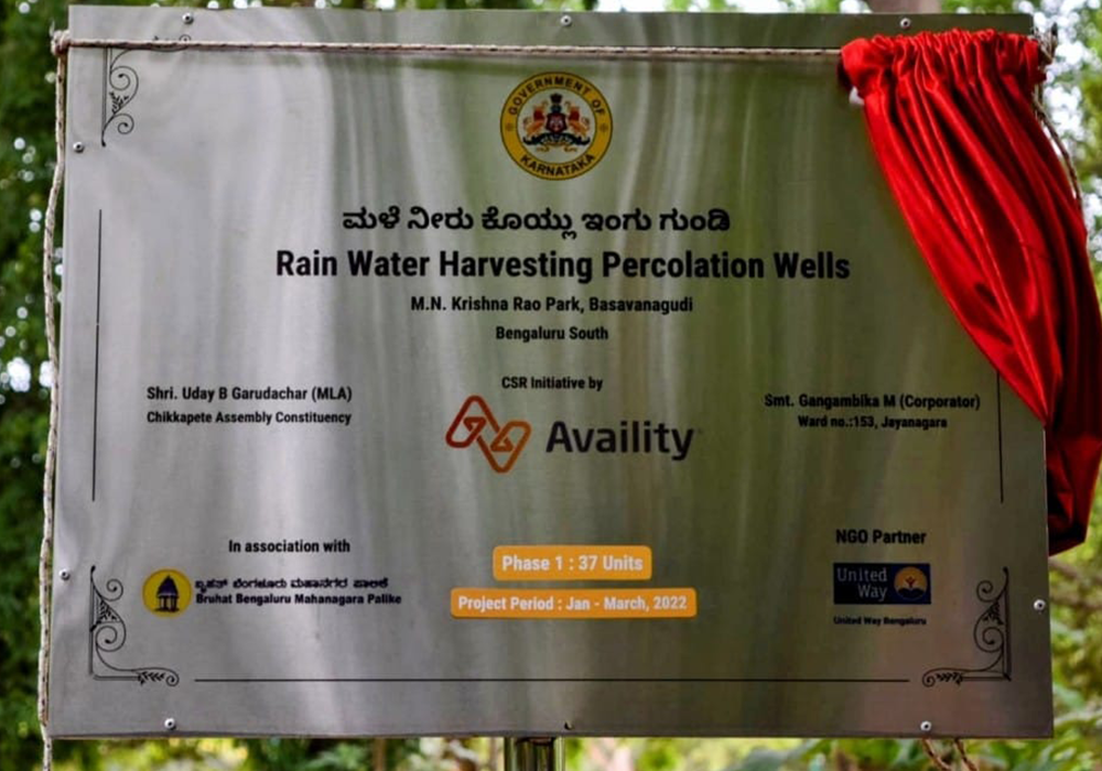 In 2022, our team joined the mission to enhance the depleting ground water levels in & around Bengaluru by conserving rainwater. We decided to do our bit of share by digging of percolation pits to ensure water security envisioning Bengaluru, a sustainable city by optimal conservation and use of nature-given rainwater. Hence, Availity in collaboration with our CSR Partners United Way constructed 37 pits in M N Krishna Rao Park in Basavanagudi area, Which was inaugurated on 30th May 2022.